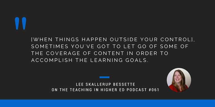 [When things happen outside your control], sometimes you’ve got to let go of some of the coverage [of course content] in order to accomplish the learning goals. – Lee Skallerup Bassette