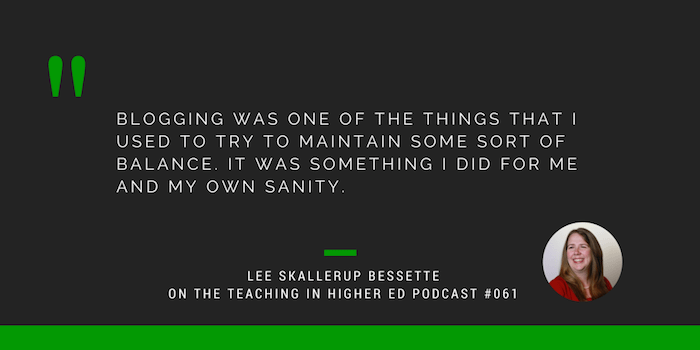 Blogging was one of the things that I used to try to maintain some sort of balance. It was something I did for me and my own sanity. – Lee Skallerup Bassette