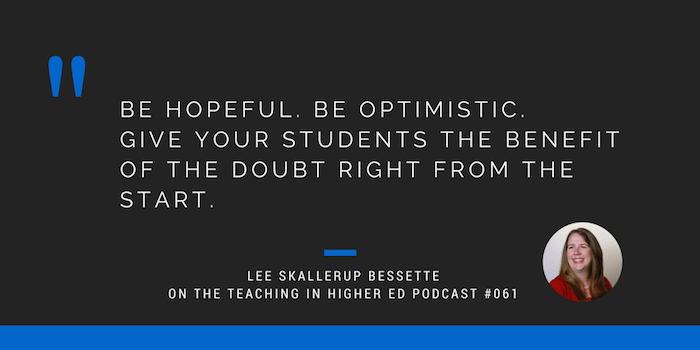 Be hopeful. Be optimistic. And give your students the benefit of the doubt right from the start. – Lee Skallerup Bessette