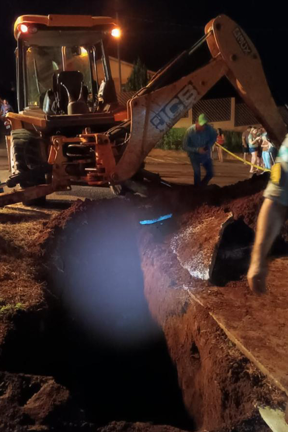 Com o auxílio da Defesa Civil, uma retroescavadeira foi usada para cavar um buraco de 1,80 m de profundidade e com aproximadamente 50 cm de distância do local do acidente.