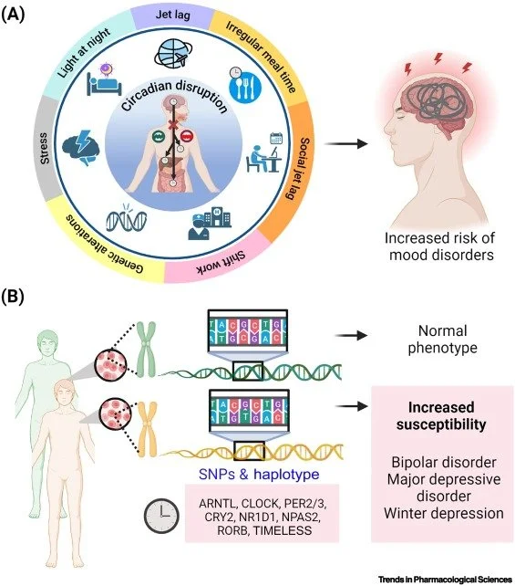 Associação de perturbações circadianas com transtornos de humor (Bhatnagar, Murray, & Ray, 2023)