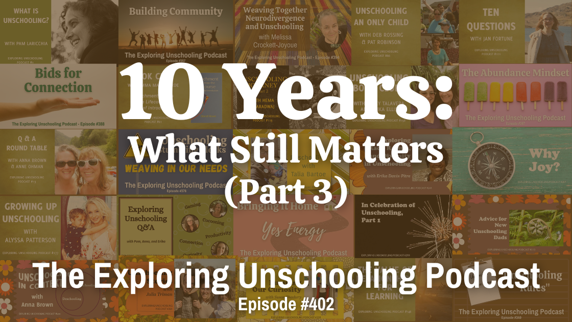 The Exploring Unschooling Podcast has now been around for over 10 years and 400 episodes! This month, we’re celebrating these huge milestones by looking back and reflecting on three big questions.