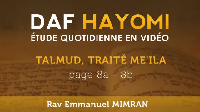 Daf Hayomi - Mé'ila 8 avec Rav Emmanuel Mimran