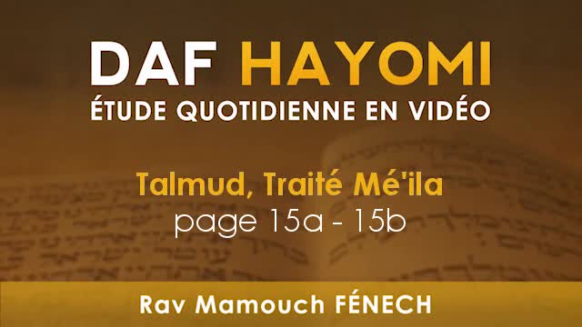 Daf Hayomi - Mé'ila 15 avec Rav Mamouch Fénech