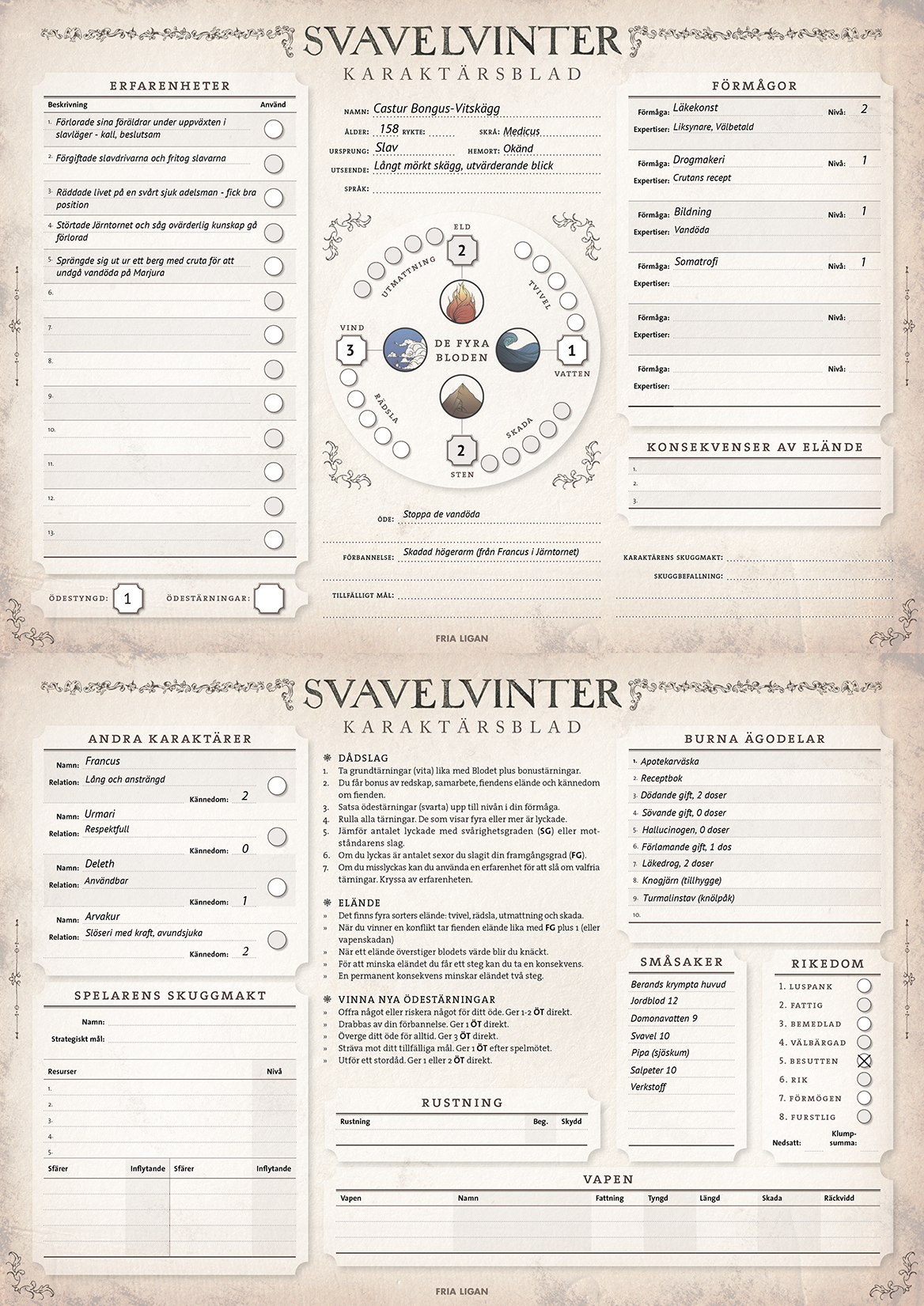 Vilka äventyr har Castur varit med om på Marjura? Det får vi höra i den sista prologen till Oraklets Fyra Ögon. Här kan du se Casturs rollformulär (högerklicka och öppna i nytt fönster).