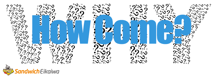 英語を学んでいる生徒さんは、英語を学びはじめの早い段階でこの表現 HOW COME? を WHO、 WHAT WHEN、 WHERE、 WHY のような基本の疑問詞と同時に教えられるべきだと思います。