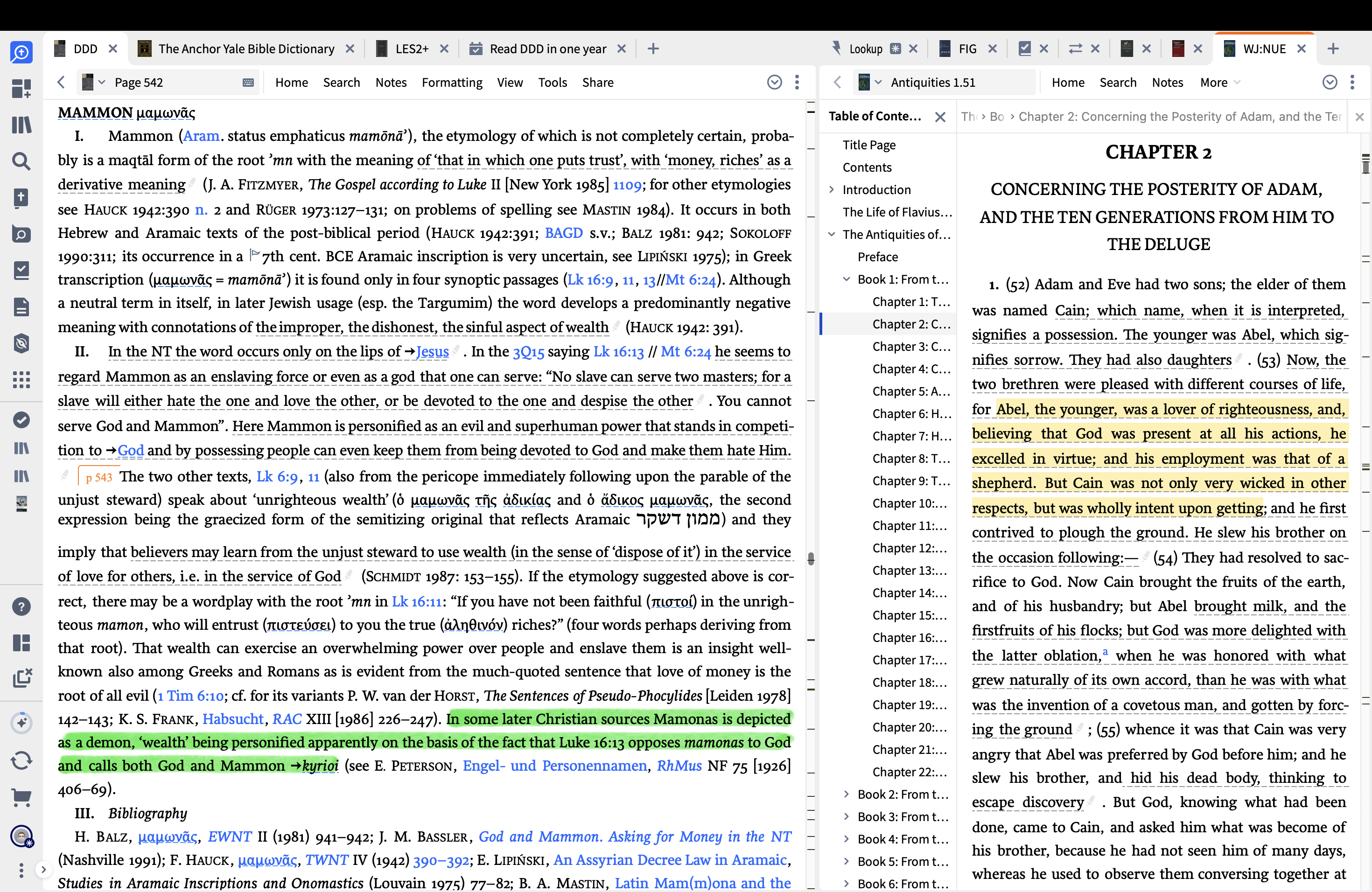 For example, when studying for a ss lesson on the first commandment recently, my conclusion spent time with Matthew 6. However, little did I know that “mammon” was an entry in the Dictionary of Deities and Demons. I left out the weeds for everyone in my ss lesson, but under the surface was the reality that materialism is more than a bad habit; it was something that could be an adaoni/kurios in someone’s life… those are the golden nuggets that are only a double-click away. |