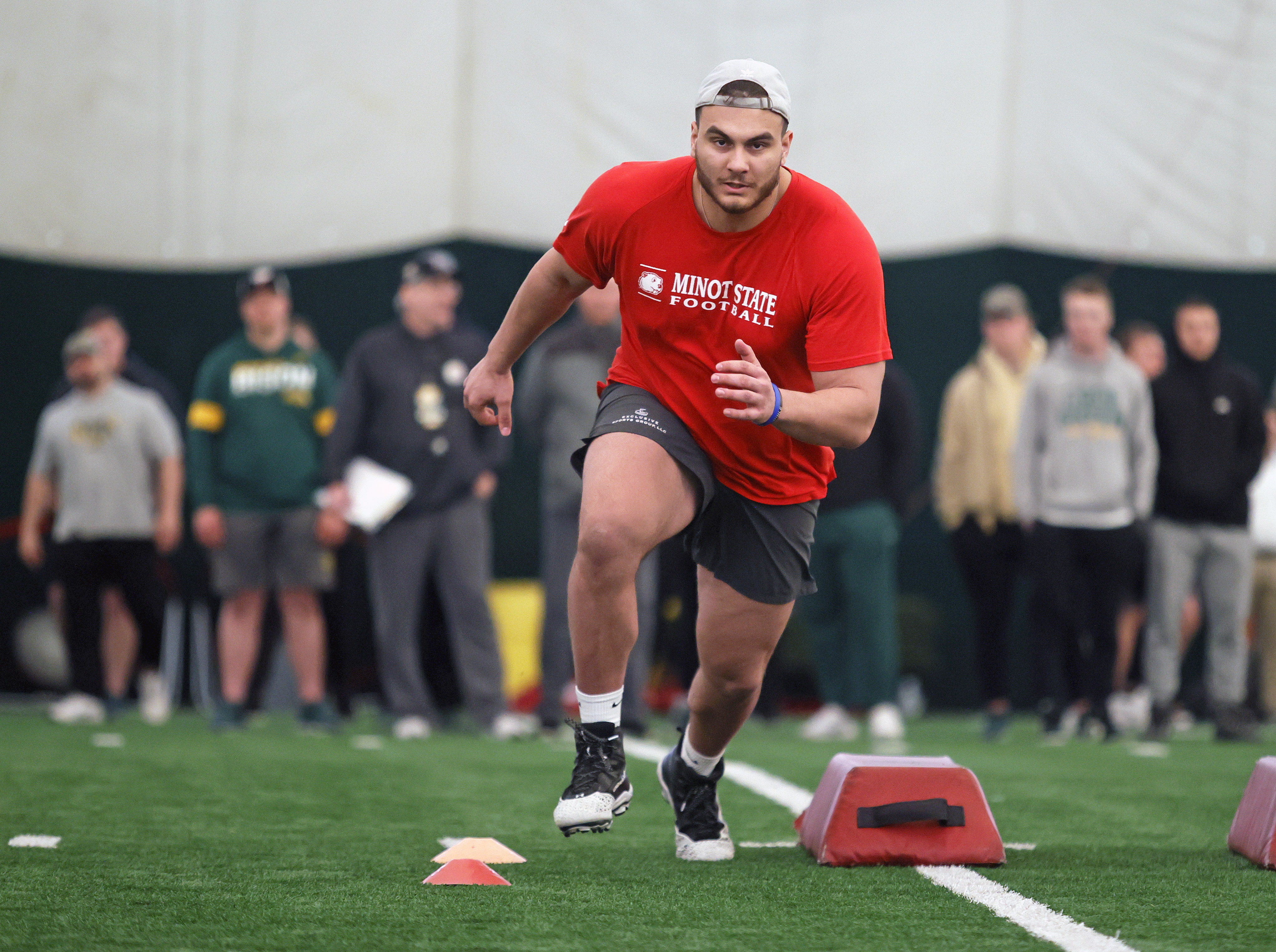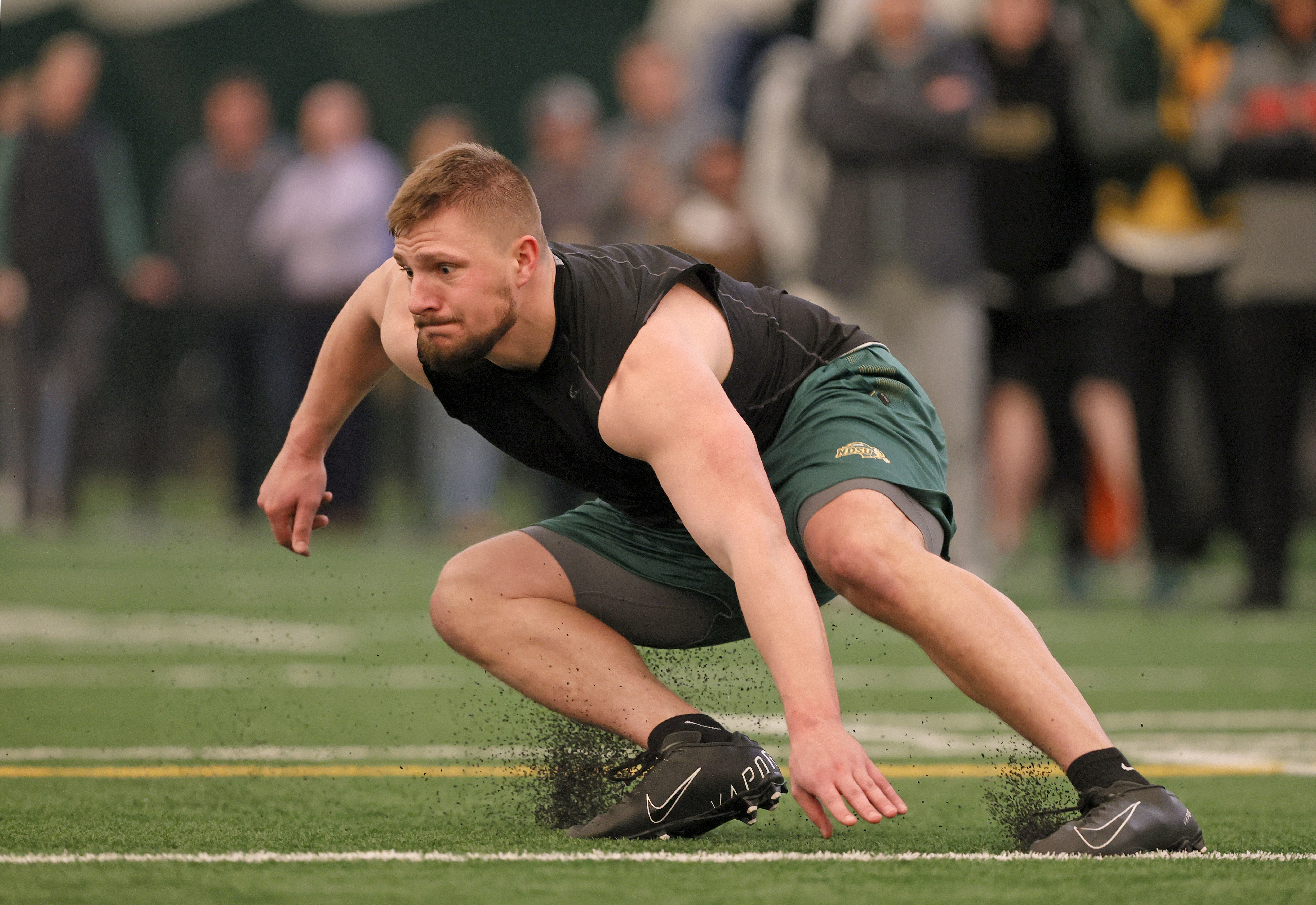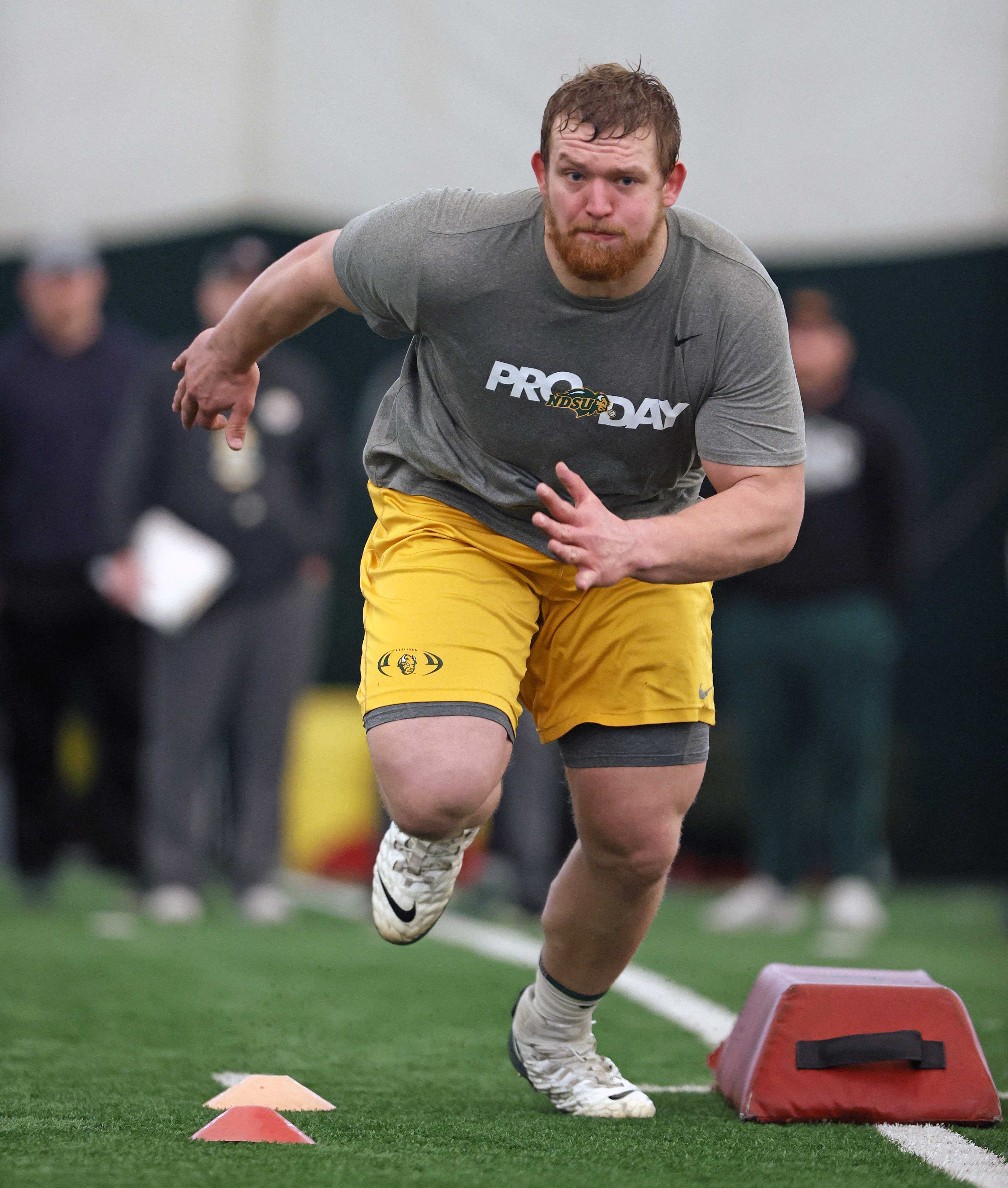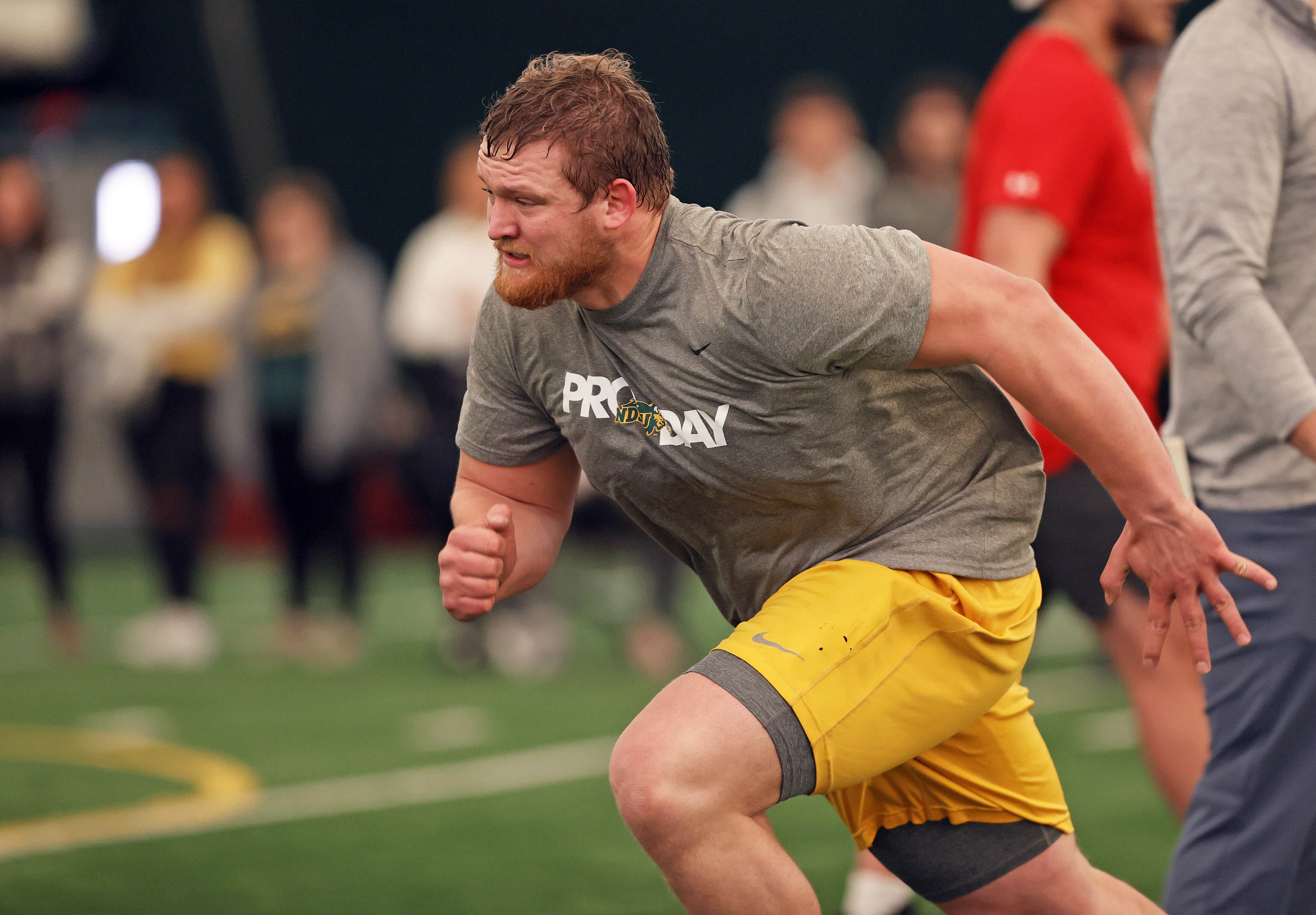 FARGO North Dakota State held its annual football pro day Thursday, March 24, at the Dacotah Field Bubble. Former Bison players Christian Watson, Cordell Volson, Josh Babicz and Brayden Thomas competed in testing and on-field drills with at least represtatives from 29 NFL teams. Minot State offensive lineman Sebastian Gutierrez also participated. Watson and Volson both previously did some testing at the NFL Scouting Combine in early March at Lucas Oil Stadium in Indianapolis. Watson, Volson, Babicz and Thomas all played in various college all-start games leading into NDSU's pro day. Below are images from Thursday's pro day: https://twitter.com/DomIzzoWDAY/status/1507067924791668737?s=20&t=vrbZMDMSoCBrzkV8o_uwdQ]]> |