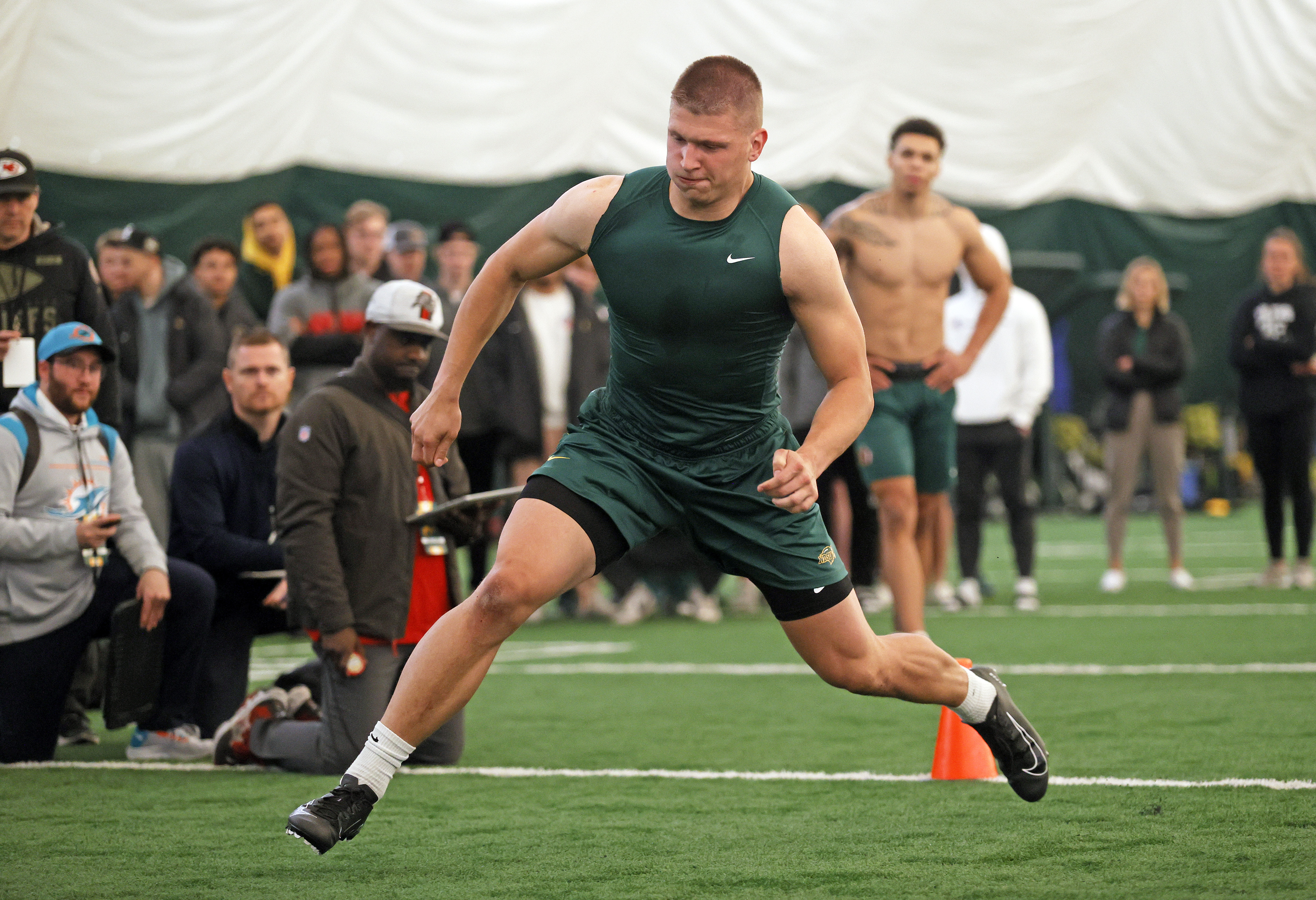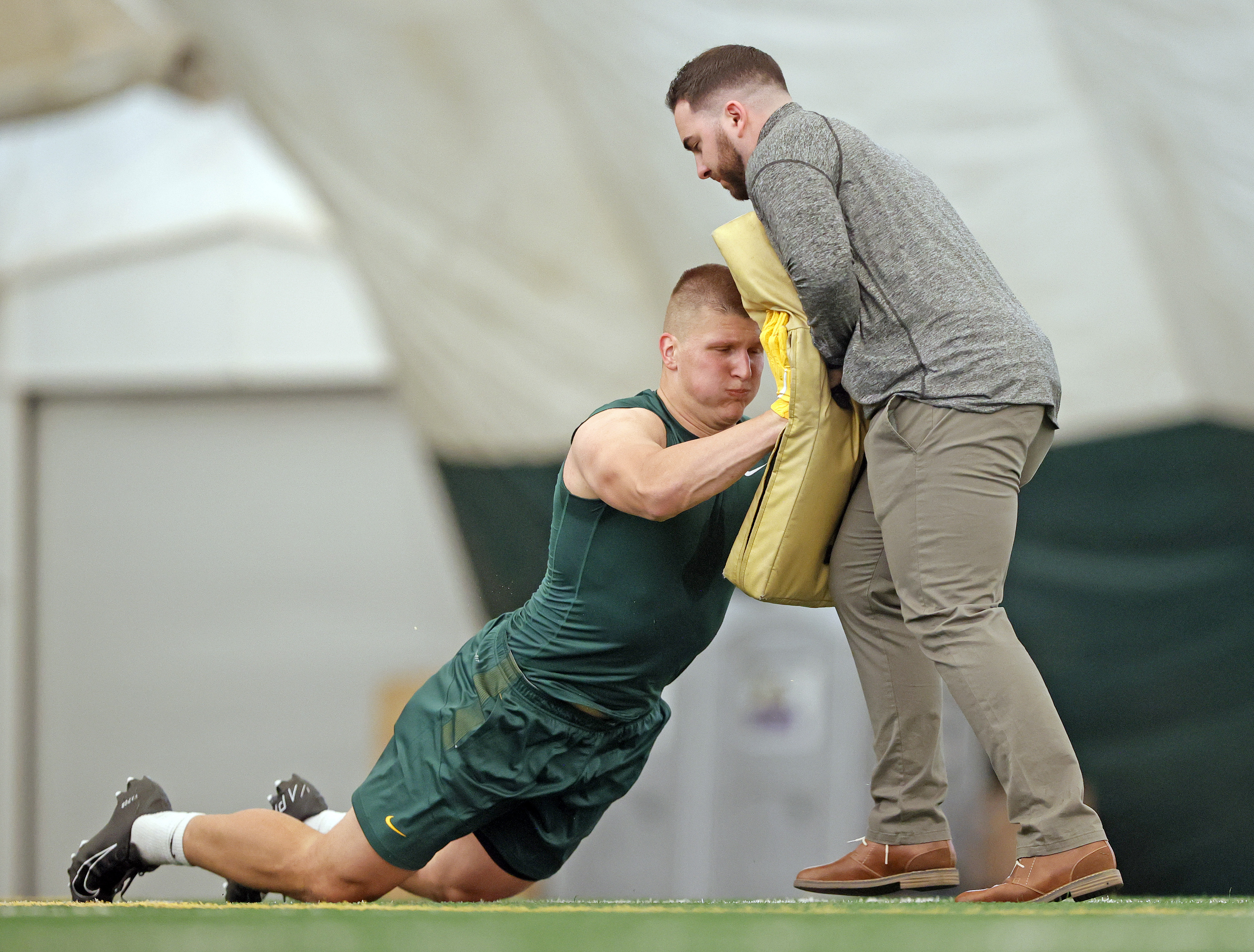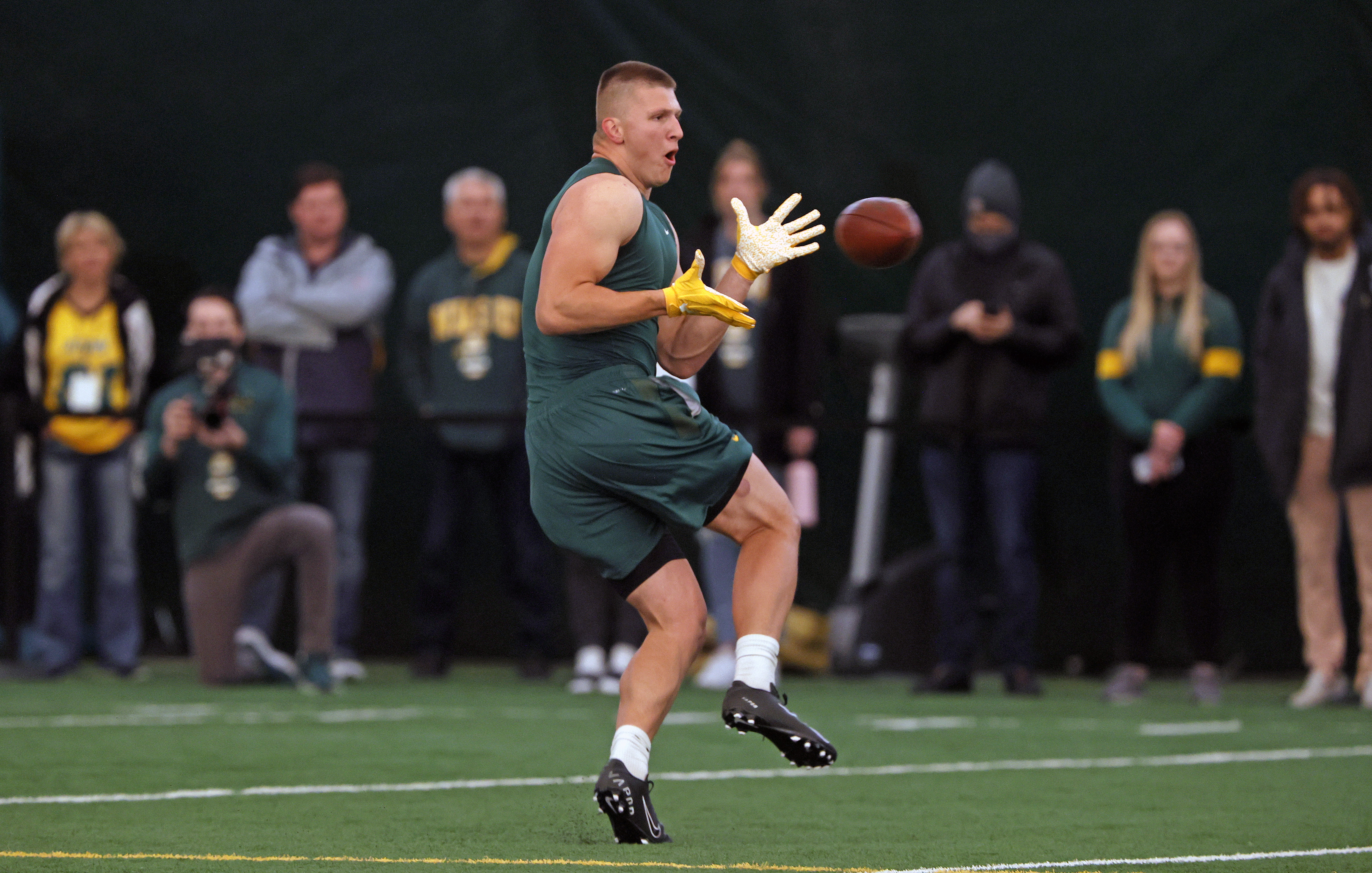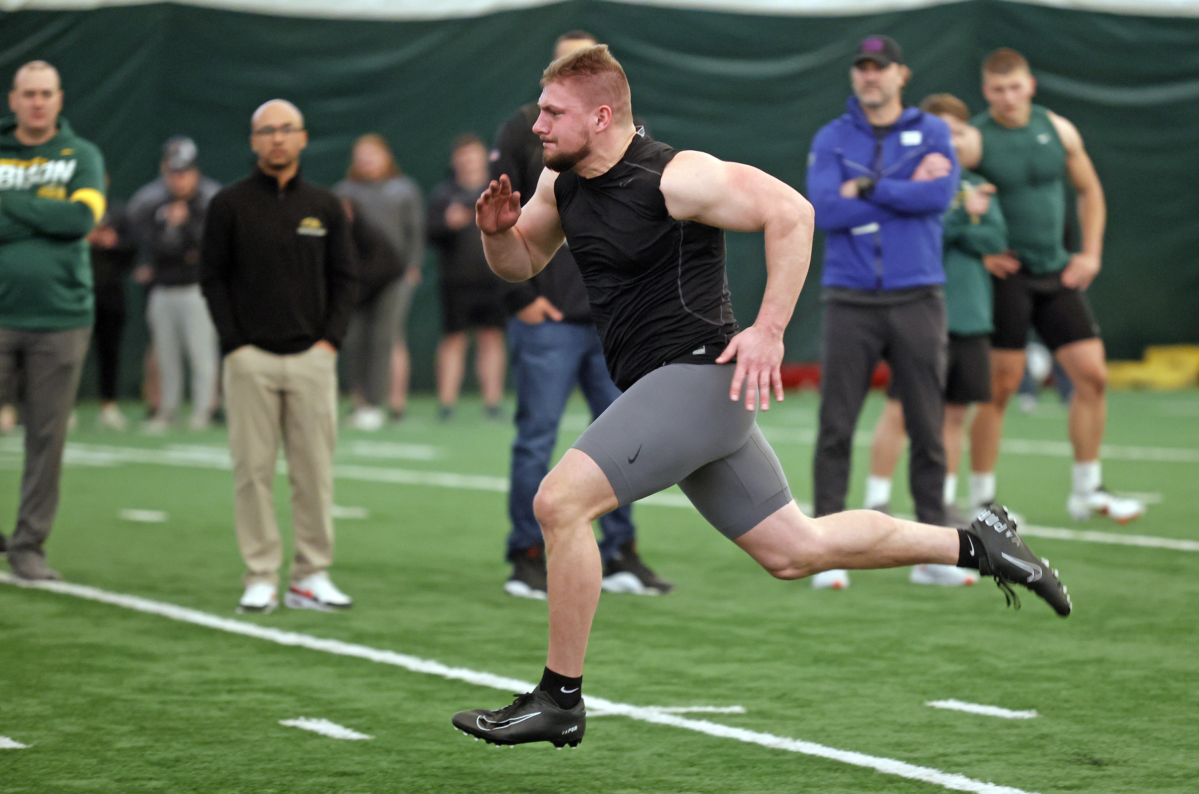 FARGO North Dakota State held its annual football pro day Thursday, March 24, at the Dacotah Field Bubble. Former Bison players Christian Watson, Cordell Volson, Josh Babicz and Brayden Thomas competed in testing and on-field drills with at least represtatives from 29 NFL teams. Minot State offensive lineman Sebastian Gutierrez also participated. Watson and Volson both previously did some testing at the NFL Scouting Combine in early March at Lucas Oil Stadium in Indianapolis. Watson, Volson, Babicz and Thomas all played in various college all-start games leading into NDSU's pro day. Below are images from Thursday's pro day: https://twitter.com/DomIzzoWDAY/status/1507067924791668737?s=20&t=vrbZMDMSoCBrzkV8o_uwdQ]]> |
