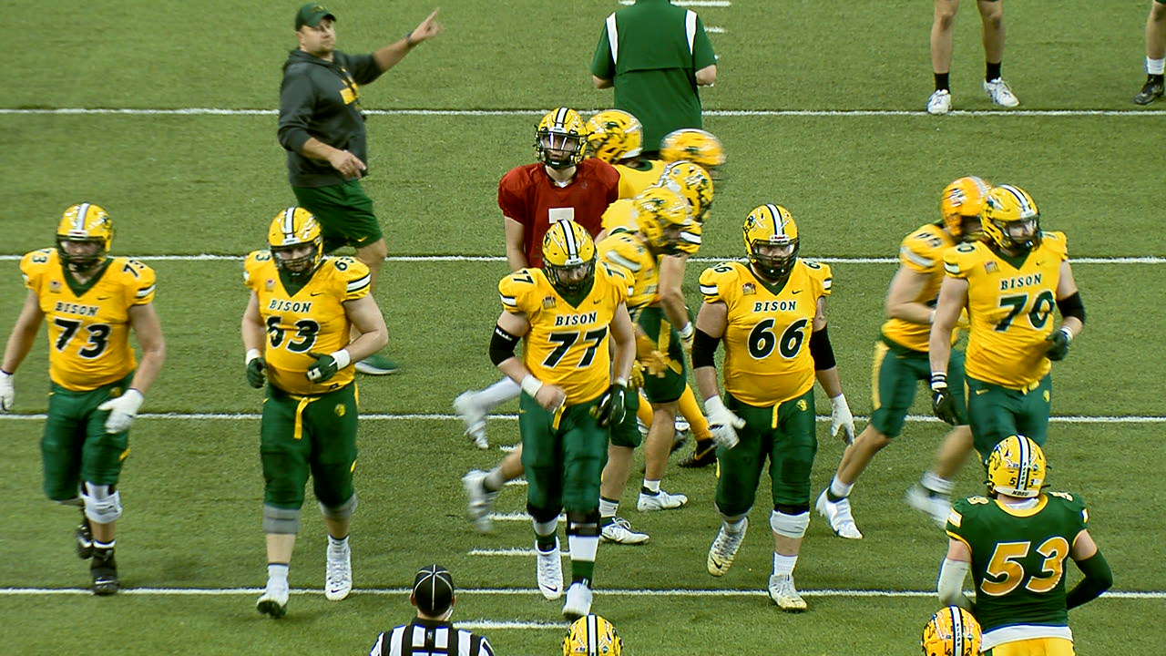North Dakota State officially put a bow on spring practice Saturday, albeit earlier then what head coach Matt Entz wanted to. Saturday's wild weather in the Fargo-Moorhead metro included a tornado warning in the late afternoon, which called for the last half hour of practice being called off. Fans were asked to leave Gate City Bank Field at the Fargodome immediately after the announcement was made. Springhighlights The practice was halted during the ninth of the scheduled 13 periods, which was disappointing as most of the team drills were still to come. There were some takeaways to highlight as this is the final time we will see the Bison on the field until fall camp opens in early August. YOUNG DEFENSIVE STANDOUTS All the talk on Bison football centers on the offense these days, and for good reason, but no NDSU fans need reminder of how they have won nine championships in eleven years. On defense. There were few opportunities for the defense to stand out, but there were two plays that grabbed my eye. One was by sophomore defensive end Loshiaka Roques, who made a nice play on the edge to get to Quincy Patterson, before he threw the ball to Logan Hofstedt. NDSU coaches continue to rave about the potential for Roques, who flashed some brilliance in a couple of games last year. Defense Eli Mostaert was an all-conference player in my mind last year, he's due for a big year in 2022. He showed his strength getting thru the offensive line to make a stop on Hunter Luepke. MANY REGULARS HELD OUT If you were at the Dome or watching at home, you certainly noticed the amount of starters or regular contributors who did not see the field Saturday. Phoenix Sproles, James Kaczor, Dawson Weber, Michael Tutsie, TaMerik Williams, Noah Gindorff, Jalen Sundell, Spencer Waege, Nick Kubitz, Jayden Price, Marques Sigle and Cole Wisniewski all were held out. Some are rehabbing injuries like Wisniewski, Waege and Gindorff, while others did not need any more wear and tear on their bodies. NEW OFFENSIVE LINE STARTERS? We did not get to see the number ones out on the field for a long time Saturday, but there was a brief sequence where NDSU's 2022 offensive line may have been on the field. Cody Mauch was at left tackle, Nash Jensen at left guard, Brandon Westberg at center, Jake Kubas at right guard and Mason Miller at right tackle. Sundell is the starting center, but Entz has discussed moving Sundell to other positions up front. Westberg earned high marks from the coaching staff last year when he started in Sundell's spot when he was hurt. Miller started the FCS quarterfinal game last spring at Sam Houston, his first collegiate start and has had the eyes of the staff as a future stud at the tackle position. COLE PAYTON The redshirt freshman quarterback took the most reps Saturday and showed again why is a tantalizing player at that position. Cole Payton Payton hit a couple of deep throws to Braylon Henderson and Eli Green, while also showing off his legs and the ability to get out of the pocket. Payton stands 6-3, 228 pounds and continues to look more and more confident each time he is on the field. It will be fascinating to see how the coaching staff will use all three quarterbacks, with Cam Miller and Patterson both returning. But the Payton train is on the move. SO LONG TO THE TURF This was the final football event on the ten year old turf. An agreement between Gate City Bank and the Fargodome was announced last week as a new playing surface will be put down for the 2022 season. This turf was actually the second to put in in 2012 after an error shortly after the first game of that season, that turf was replaced. It was the turf that was used on the outdoor practice fields for the last decade. TREY LANCE RETURNS It was a who's-who list of notable Bison alumni, led by the two guys who were drafted in the first and second round in the NFL Draft last year. Trey Lance and Dillon Radunz were on hand for the final spring practice, each taking time away from their respective NFL teams and their offseason team activities. Lance saw his younger brother, Bryce come up with a nice reception during the drills. ]]> |