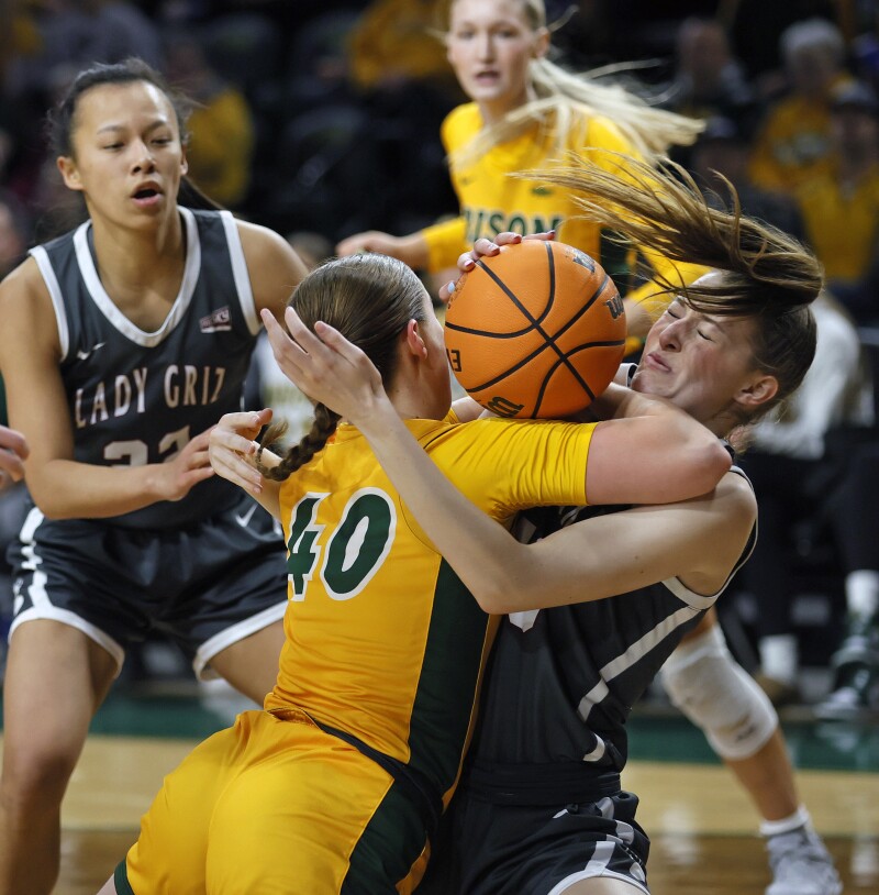 3-point goals: UM 11-24 (Gfeller 0-1, Bartsch 0-2, Konig 1-3, Espenmiller-McGraw 4-6, Marxen 6-12), NDSU 5-16 (Draper 0-1, H. Hamling 1-5, Evans 3-4, Schulte 0-1, Krzewinski 1-3, Simon 0-1, T. Hamling 0-1). Total fouls: UM 21, NDSU 12. Fouled out: Geller. Rebounds: UM 25 (Bartsch 13), NDSU 46 (Krzewinski 8). Assists: UM 9 (Bartsch 3), NDSU 13 (Schulte 5). Turnovers: UM 7, NDSU 10.            ]]> |