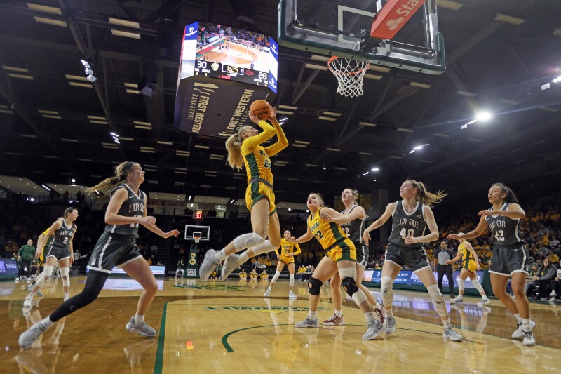 Junior forward Abbie Draper paced the Bison with 18 points and seven rebounds, while sophomore guard Elle Evans added 17 points, four rebounds and two blocked shots.