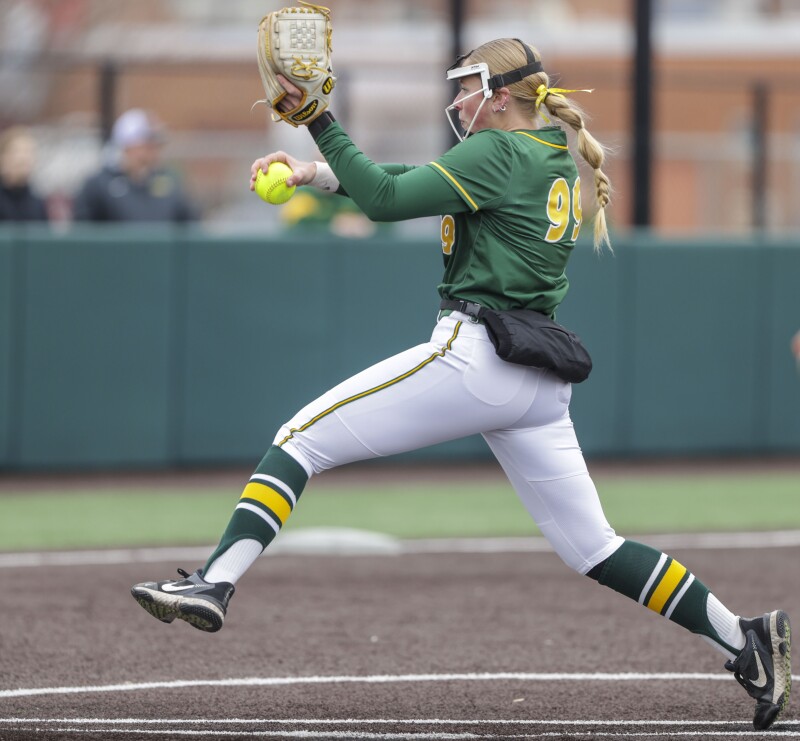 Reliever Kaitlyn Dunford went 3-2/3 innings, allowing a run on four hits, to get the win and improve to 5-3.  In the second game, the Bison again broke out strong, taking a 12-1 lead through two innings. But the Tommies weren't dead, scoring seven runs in the third inning and another in the fourth to cut NDSU's lead to three runs.