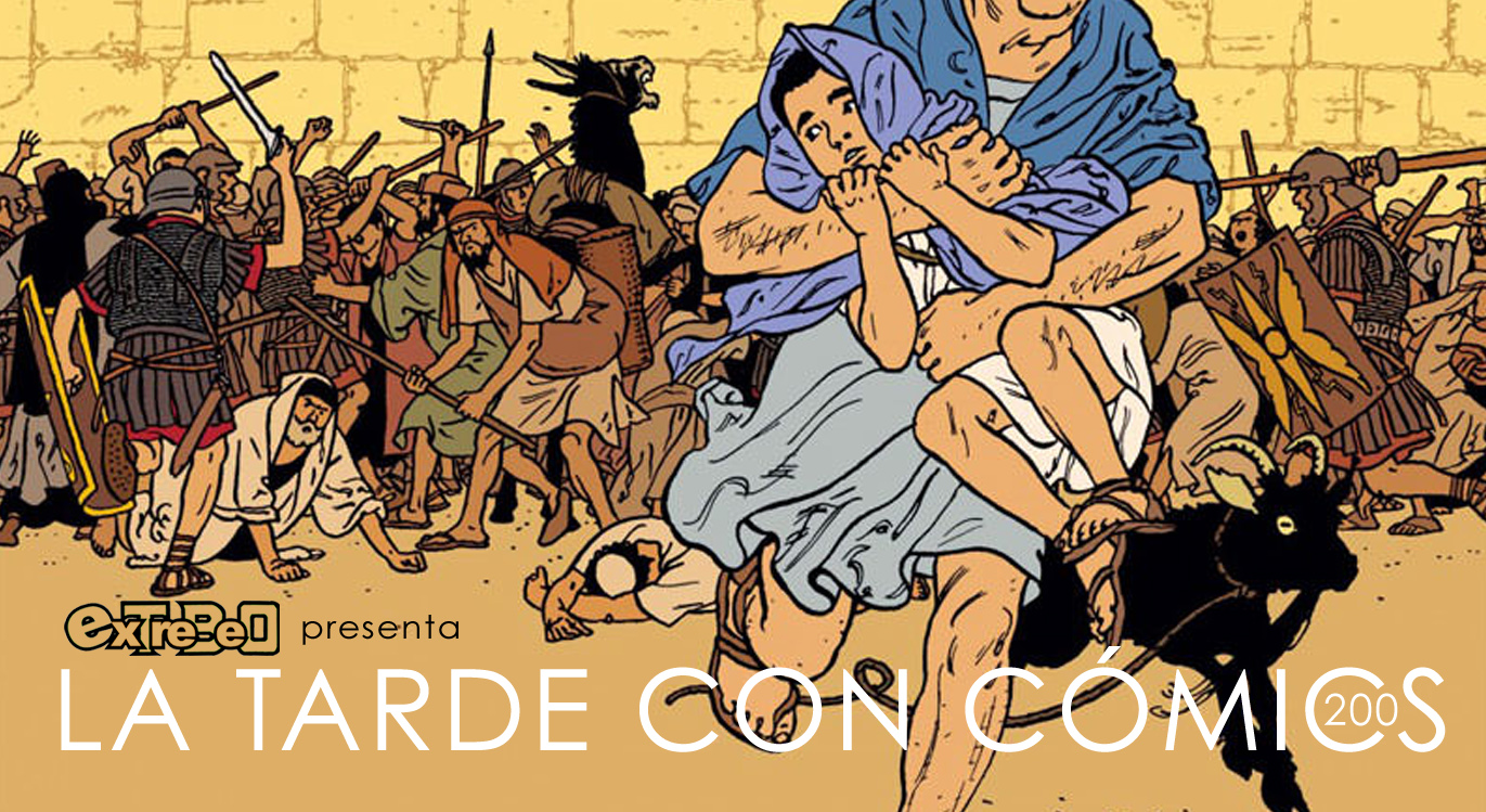 o ESCÚCHALO online pinchando directamente. El primer tomo comienza presentándonos a un pastor judío y a su hijo Gamaliel, que acuden a Jerusalén para ofrecer al Eterno el sacrificio de un cordero que llevan consigo, en memoria de la madre fallecida; pero nada más llegar se encuentran con que en el Templo le exigen el pago de un diezmo, lo cual el pastor considera una violación de la Torá… y lo que comienza con un enfrentamiento dialéctico acerca de las escrituras sagradas terminará a las manos, con un sensacional tumulto entre los allí congregados; acuden los soldados romanos, huyen los otros y, en el intento de escapar de la ciudad amurallada, apresan al padre. A partir de ese momento la historia seguirá principalmente al pequeño Gamaliel, junto con un variado elenco de personajes de muy diversa personalidad, origen y forma de entender la vida: Josué, un judío zelote de acusada ortodoxia que aboga teóricamente por la revuelta contra los romanos; su hermana Tsiporah, más flexible y humana, que cuida de Gamaliel; Élie, corpulento hombre de acción; Yeshayahu, judío con influencias de la filosofía griega que se declara profeta y defiende entre chascarrillos una vida orientada al presente y a una convivencia más pacífica; o Camulos y Cotus, galos desertores del ejército romano, que darán un último contrapunto a esta obra coral. A lo largo de las cerca de 150 páginas que componen esta primera trilogía los autores muestran, dentro de una historia donde son constantes las aventuras, el humor y la acción, una mirada no exenta de crítica e ironía en torno a las contradicciones y paradojas que se reflejan entre la forma de vivir y de entender la existencia de esa sociedad.
