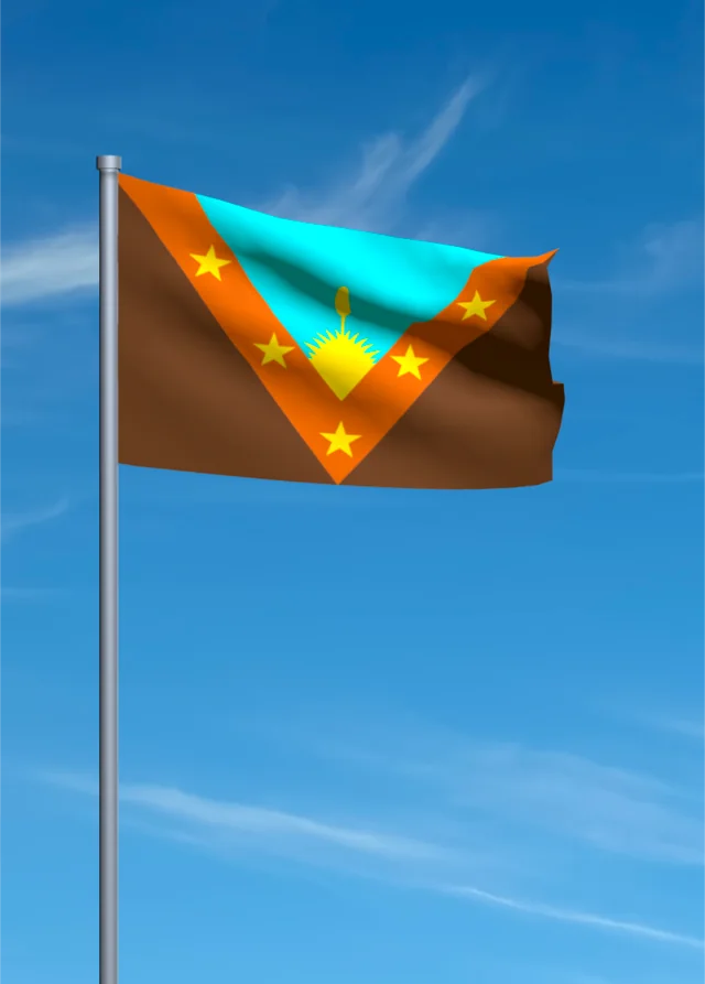 “The blue represents the sky and the turquoise of the mines around the area of Yucca Valley. And the orange ‘V’ represents rocks and sand. The brown represents the mountains and canyons and the valleys of Yucca Valley as well. The flag also features five stars that represent Yucca Valley’s history. The first representing the Serrano and Chemehuevi native tribes. The second star representing the reign of Spain. The third representing the Mexican Empire. The fourth star representing the California Republic and the fifth star for the United States.