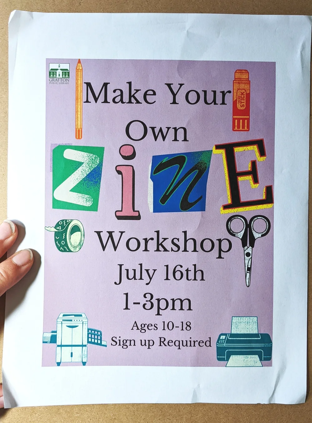 I was recently invited by the Grafton Public Library in Massachusetts to teach a Teen Zine Workshop. It was so much fun!