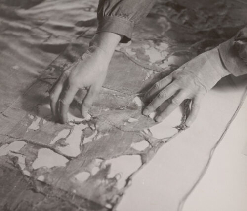 Arbete på textilenheten, Riksantikvarieämbetet 1945. Foto: Claire Holm (PD).