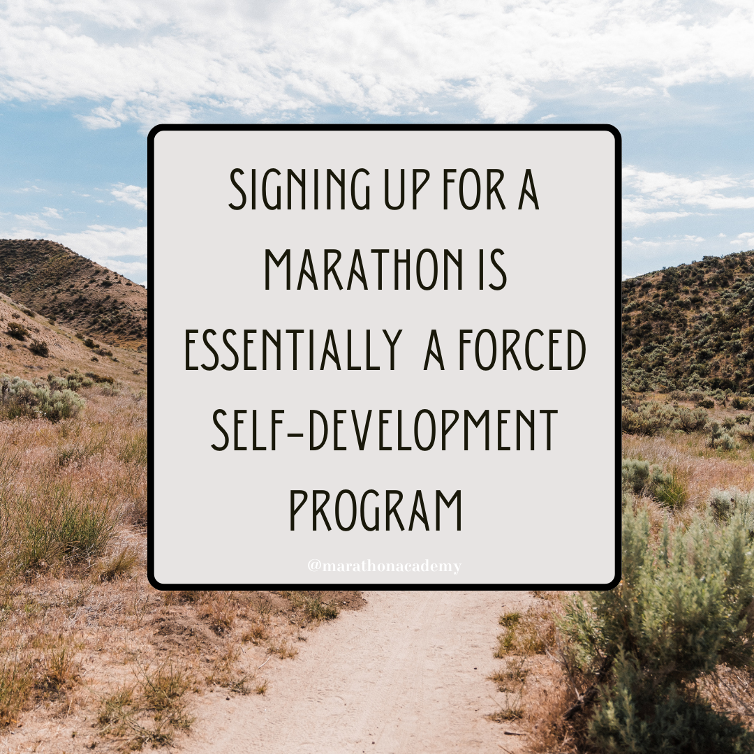 Running a marathon is like a forced self-improvement program. Self-leadership is having a vision of the person you want to be in the future (your future self) and putting yourself in process. Commit to the process!