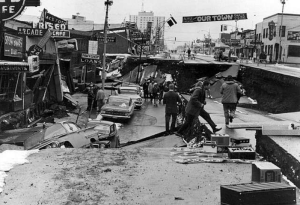The most powerful earthquake ever recorded in North America struck 75 miles south of Anchorage in March 1964. More than 130 people lost their lives in the temblor and the subsequent tsunamis. The state’s largest city endured major damage to buildings, property, and infrastructure. Kodiak, Seward, Valdez, and the village of Chenega were among the places severely damaged by rising waters. The event forever changed how Alaska monitors and prepares for dangerous seismic threats.