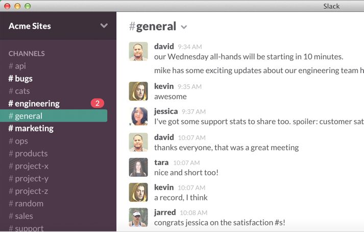 Create channels, which include messages, files, and comments, inline images and video, rich line summaries, and integration with services you use every day, like Twitter, Dropbox and Google drive.
