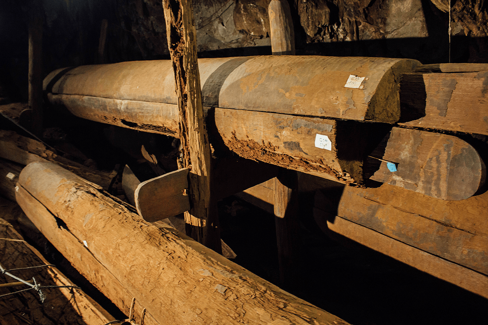 โซนถัดมาเจอเศษไม้ ที่เคยเป็นคานเป็นเสารองรับโลง สภาพไม่ค่อยสมบูรณ์