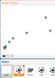 Let’s look at two very nice features of Tynker. The physics feature allows you to have falling objects and accurate projectile motion, combined with adjustments for gravity, friction, density, gravity, and much more. Cloning lets you have multiple instances of actors (like Scratch sprites), without having to duplicate code.